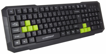 Pieslēguma tips: Vada, Kategorija: Datorspēlēm, Savienošana ar datoru: USB, Apgaismojums taustiņiem: Nav, Valodas: ENG, Komplektācija: Klaviatūra, Krāsa: Melna, Garantija: 2 gadi